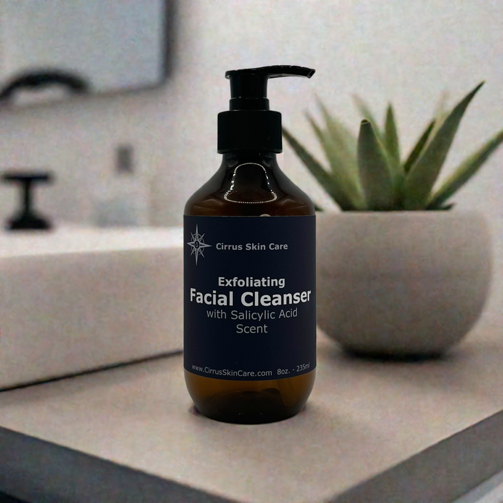 Our 8oz. Exfoliating Facial Cleanser is formulated to sweep away buildup and unclog pores without over-drying. Powered by Salicylic Acid and balanced with Aloe and Coconut-derived cleansers, it helps smooth rough texture, reduce breakouts, and promote a clearer, healthier-looking complexion. Gentle enough for regular use, tough enough to deliver results.